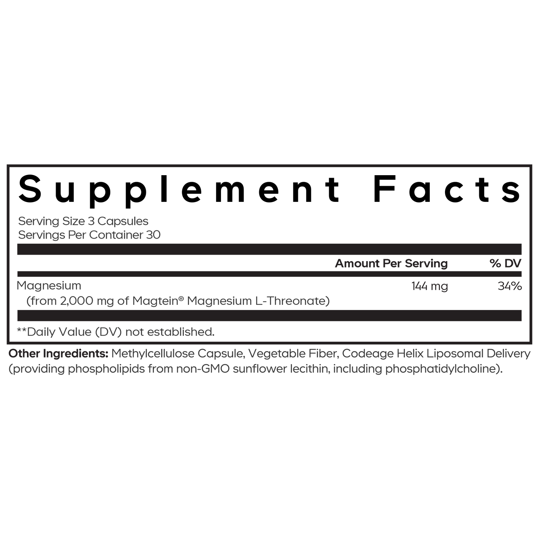 Codeage Liposomal Magnesium L-Threonate supplement features a patented form of magnesium threonate with Magtein® Magnesium L-Threonate. This magnesium L-Threonate supplement also comes with liposomal delivery.