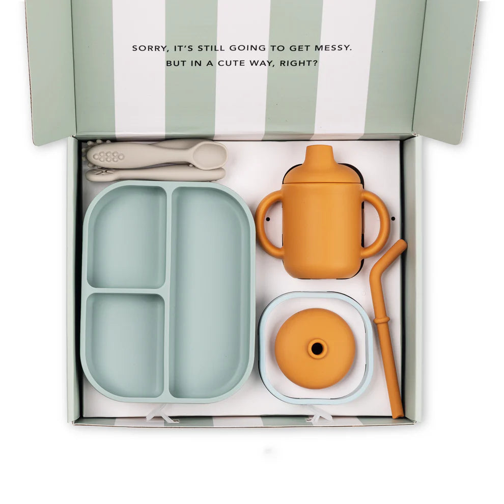 Ready, set, eat! Introducing our expert-approved toolkit of mealtime essentials for baby’s first food and drink! This set is the perfect new baby gift and a parent must-have. Each set includes all of the products needed for the first moment of introducing solids to little ones. Each product is designed to be used from parent led weaning or baby led weaning to independent eating.