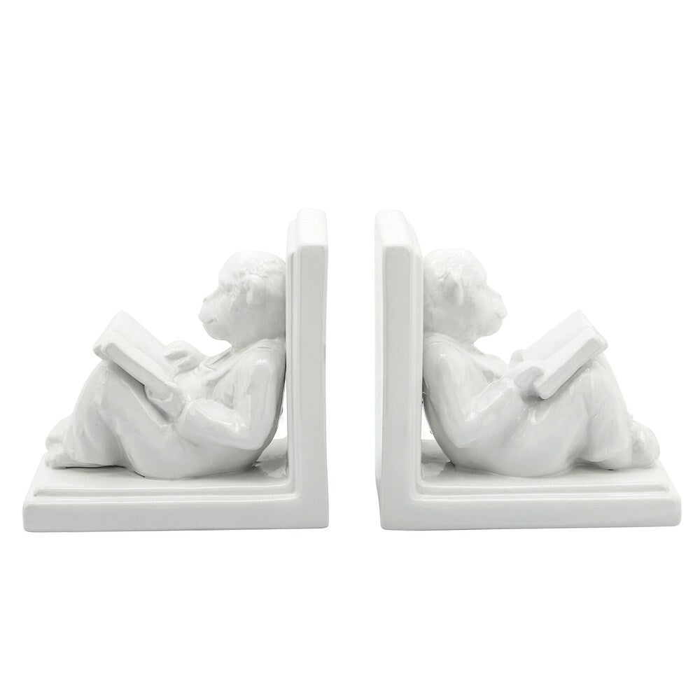 Set of 2 Ceramic 7" Reading Monkey Bookends in White. This Reading Monkey bookend will bring a nature feel to your home. They will go great with your current home. They also make for interesting shelf decor while doubling as functional bookends.Sagebrook Home has been formed from a love of design, a commitment to service and a dedication to quality. They create and import fashion forward items in the most popular design styles. Backed with years of experience in the textile field, They are now providing a complete Home decor story. the combination of wall decor, furniture, lighting and Home accessories are all coordinated with textiles to provide a complete Home look. Sagebrook Home is committed to providing the best Home décor and accent pieces at value prices.