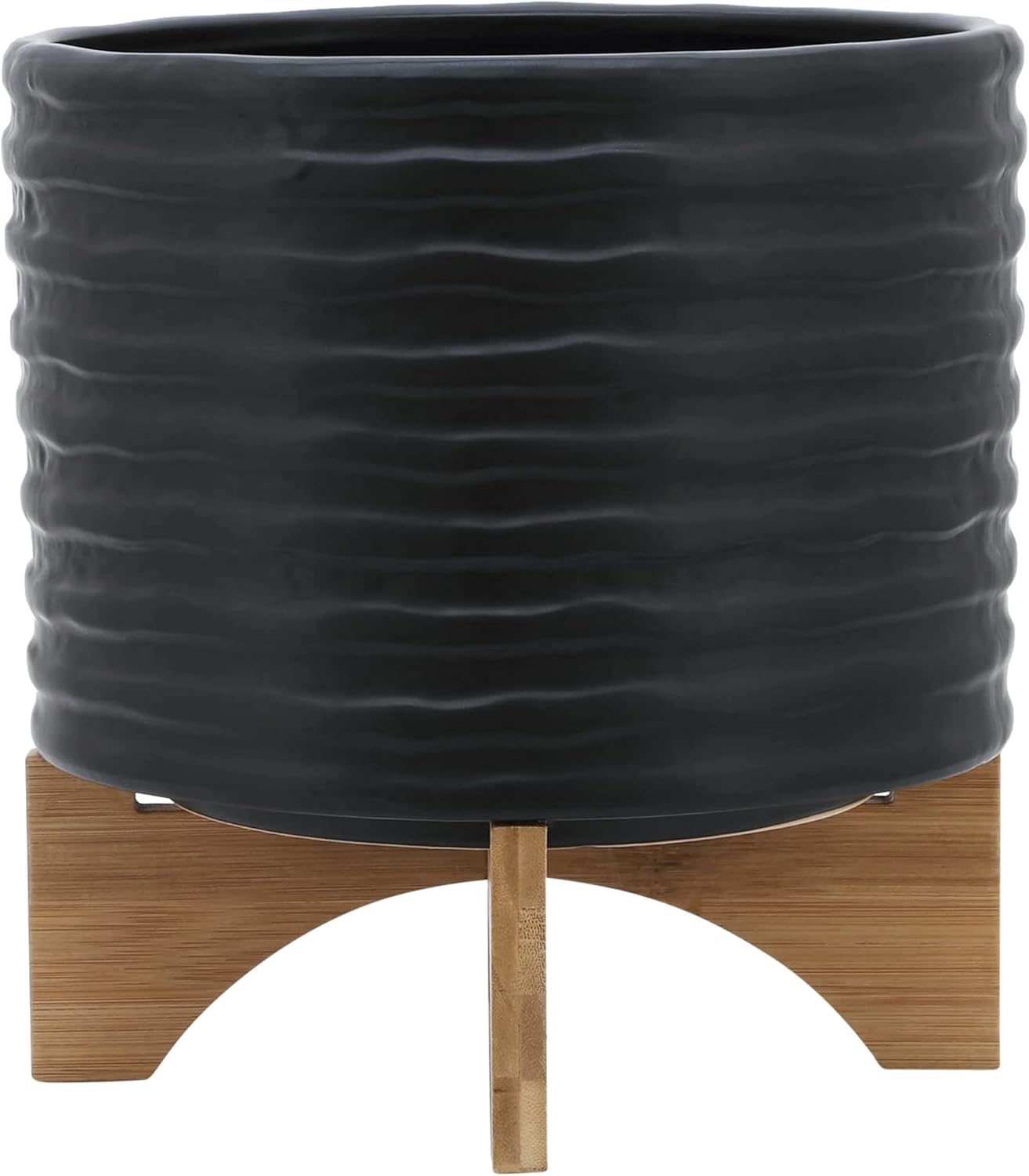 11" Textured Planter With Stand Black. Complete Your Mid-Century-Modern Home Décor With This Attractive Textured Planter. A Solid Wood Stand Keeps The Container Elevated, And The Planters Design Perfectly Compliments Any Existing Interior-Design Style.