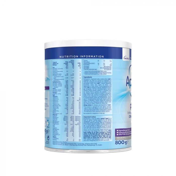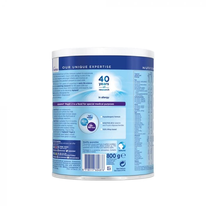 Aptamil Pepti 2 is for the dietary management of cow's milk allergy (CMA). Suitable from 6 months to complement a cow's milk-free weaning diet.