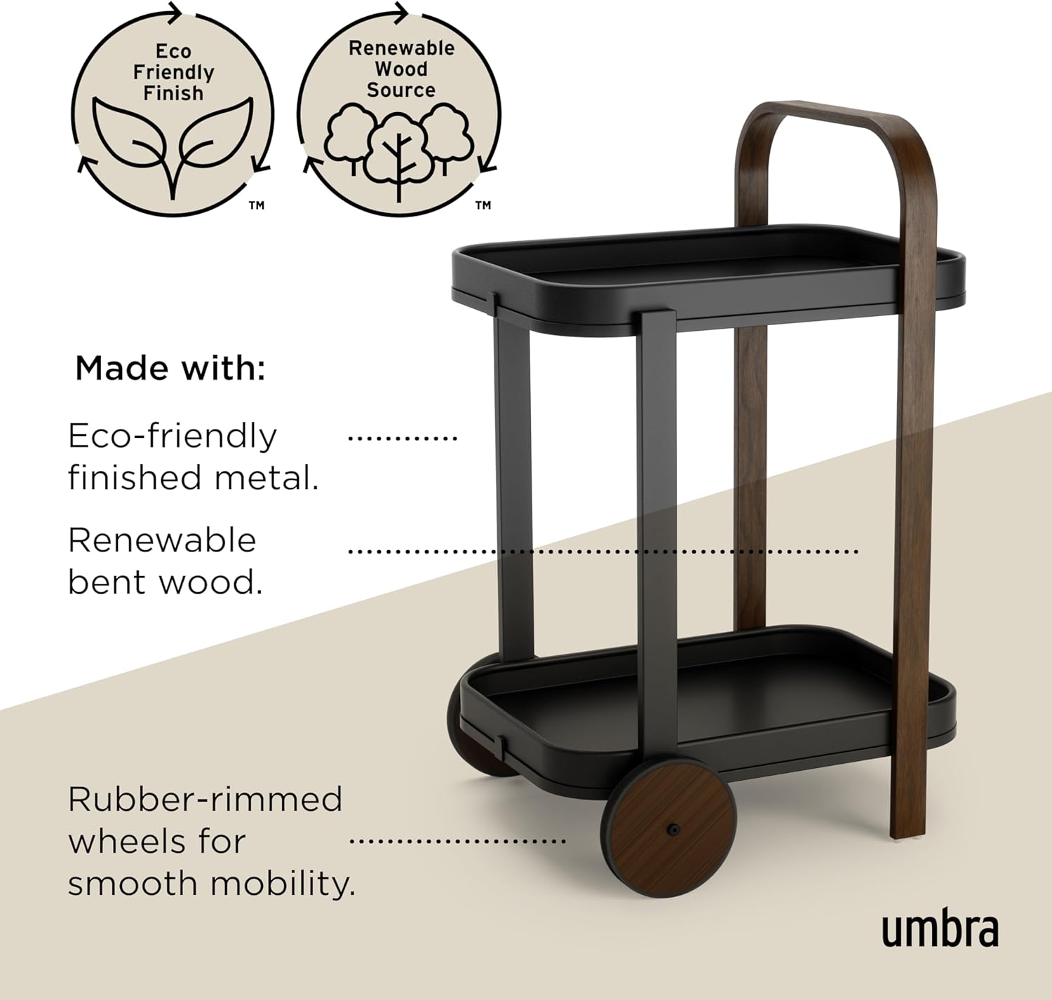 - TWO-TONED WOODEN DETAIL: This modern bar and serving cart features a two-tone bentwood detail, adding warmth to your space, while still being able to complement surrounding decor