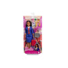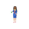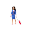 Get ready for takeoff! Flight Attendant Barbie is ready to help her flight team and passengers. Dressed in her blue matching skirt-suit outfit, Barbie's red ballet flat shoes complement her look. She comes with traveling inspired accessories, like a red rolling suitcase, pink passport, and headphones! She can pass out water and snacks to travelers with her silver tray and water jug. Let imaginations fly high in the sky with this career-inspired doll! Doll cannot stand or dance alone. Colors and decorations may vary.