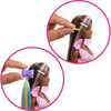 Styling accessories include a clip with rainbow hair extension, cat ear headband, set of hair ties and one set of hair clips!