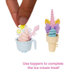 To create realistic ice cream making, kids can use two kinds of dough (pink or blue) and put it in the ice cream machine, pull the lever and watch the "ice cream" swirl out and use the ice cream toppers, too
