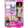 Wearing a cute ice cream print dress and striped apron, Barbie doll is ready to make ice cream treats and serve her customers