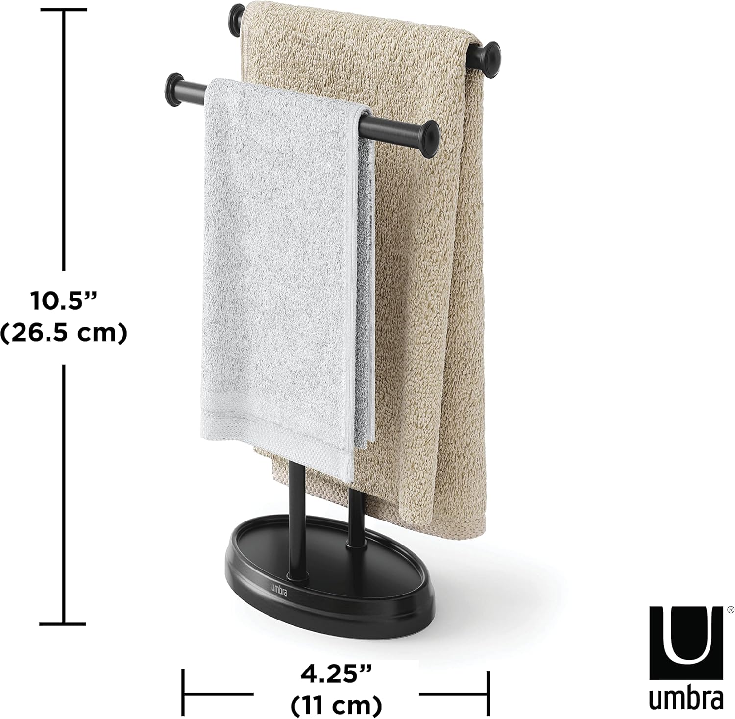 Additional Storage: The towel tree not only has space to comfortably hang two towels but also has a handy base that can act as a tray to hold smaller items