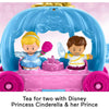 Little People 2-in-1 horse-drawn carriage vehicle and playset featuring Disney Princess Cinderella and her Prince Roll the carriage along for vehicle play or open it up to a playset for Disney Princess pretend play Spin the ballroom floor to see the figures “dance” the night away Seat the figures at the table to enjoy a pretend tea party with Disney Princess Cinderella and her Prince Helps strengthen fine motor skills and encourages imaginative storytelling play for toddlers and preschool kids ages 18 months to 5 years old