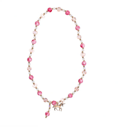 PINK & WHITE UNICORN NECKLACE WITH BEADS