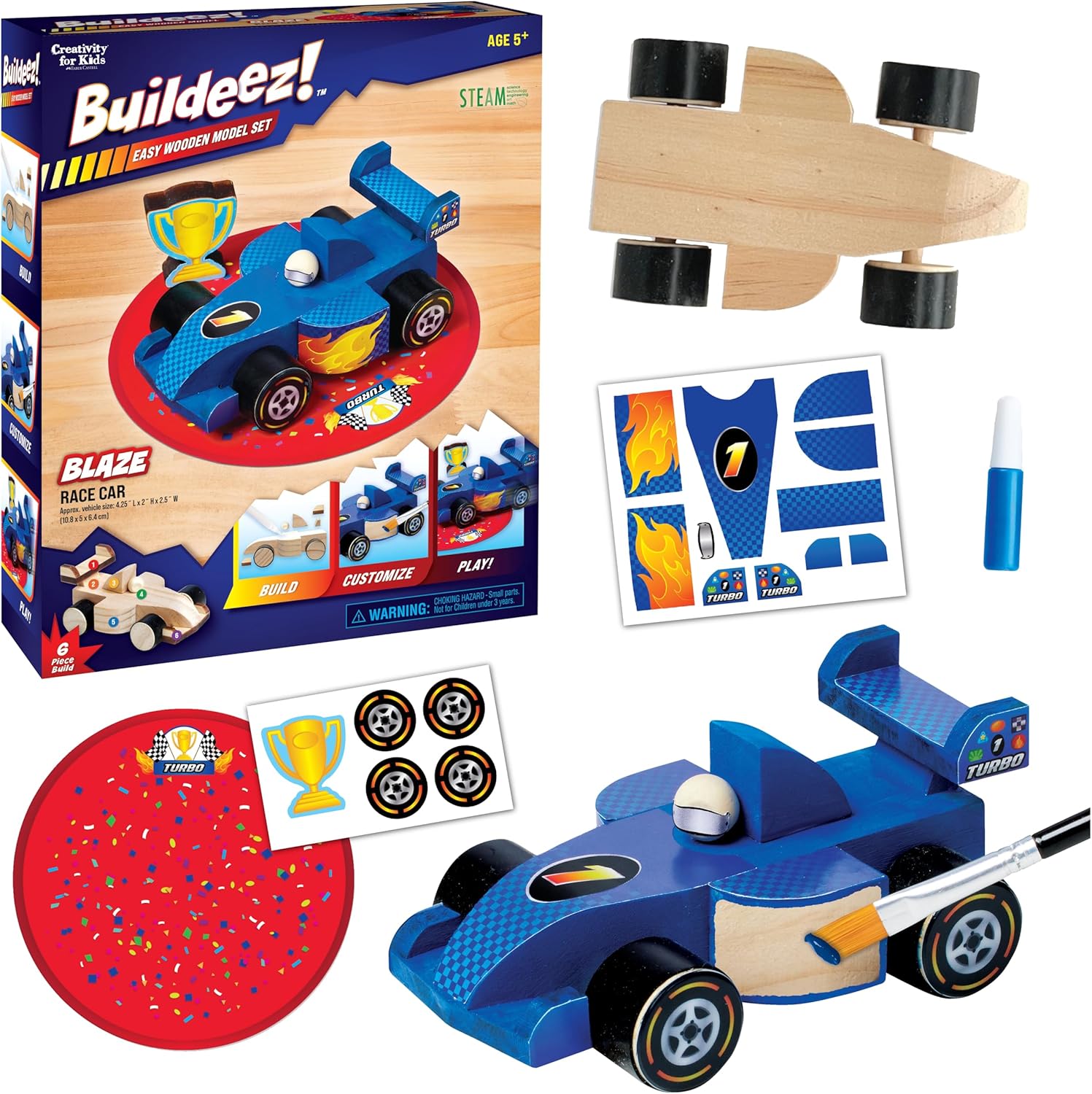 With Buildeez!™ Blaze the Race Car, kids will go on a race day adventure pretending to set the pace to conserve fuel and tires while staying competitive as they build, paint and decorate their very own toy race car! Unlike typical model car kits, our approach to kids building kits and traditional model building, guarantees more excitement and creativity for beginners in every box! With play figures, dimensional stickers and surprise extras, we aim to stimulate your child's imagination and provide endless hours of enjoyment!