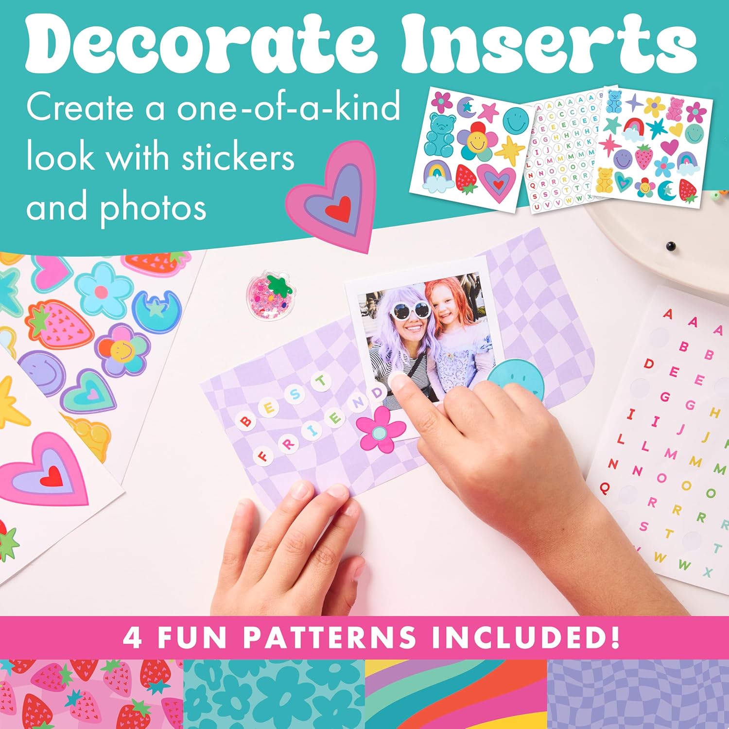 - FASHION CRAFTS FOR GIRLS: The ultimate gifts for girls who love fashion and crafts! This DIY bag kit comes with a clear belt bag, 2 double-sided patterned inserts, 2 sticker sheets, an alphabet letter sticker sheet, and fun beads. Add extra flair with a teal lobster clasp, beading string, and a strawberry puff shaker sticker. Perfect for creative fun and ideal for gifts for 10 year old girl