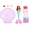 With a glittery fin and her signature mermaid look, Ariel doll can bend at the waist and lounge in her purple shell-shaped pool!