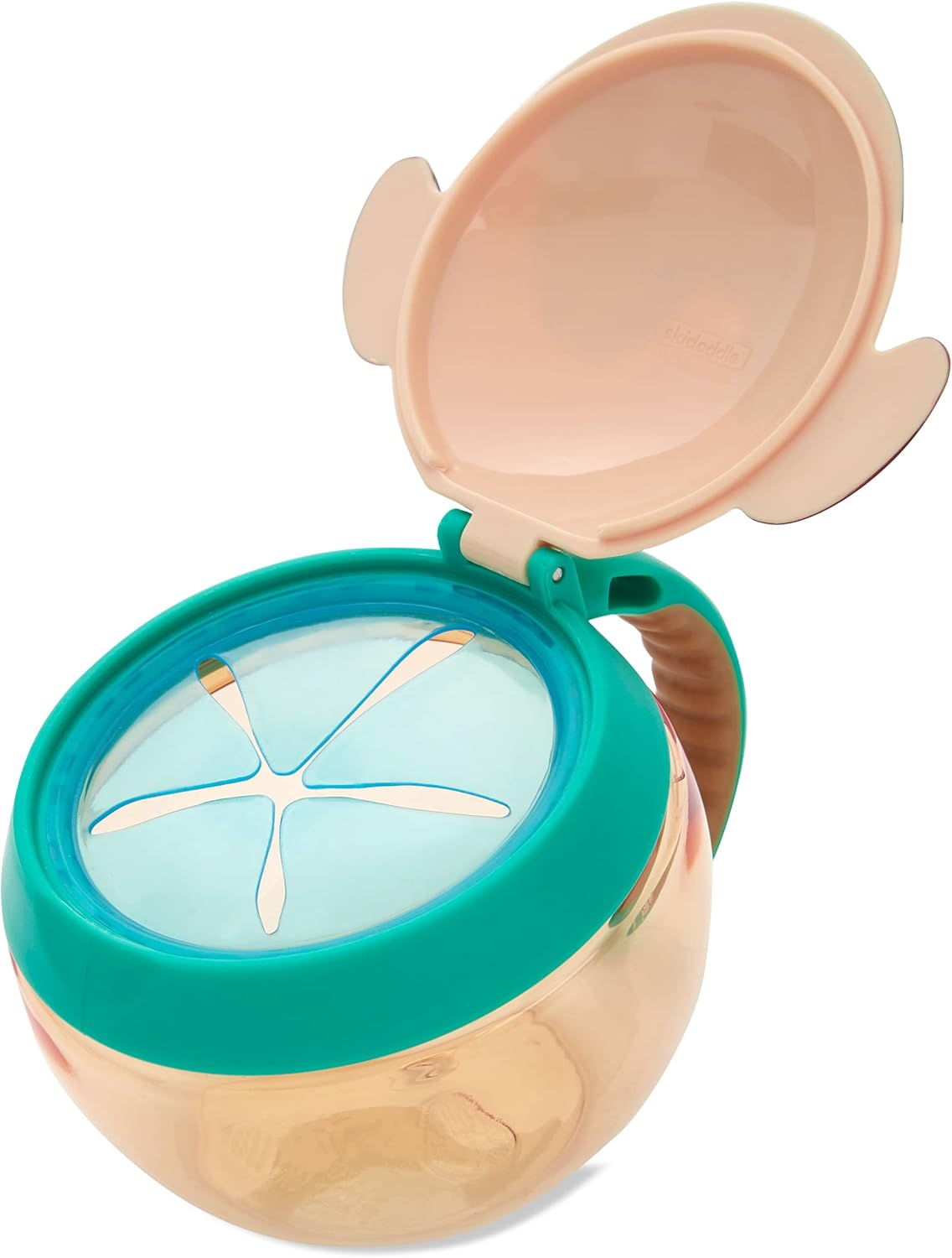 - Perfect for toting munchies, this cute cup encourages independent snacking without the mess. The easy-grip handle is sized just right for little hands, and the snap top lid ensures food stays fresh